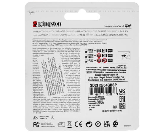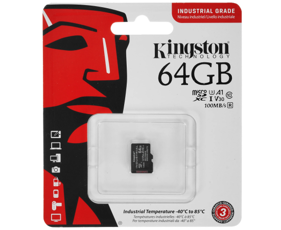 Карта памяти Kingston SDCIT2/64GBSP microSDXC 64Гб Class 10 UHS-I U3 V30 A1 TLC в режиме pSLC, темп. режим от -40℃ до +85℃