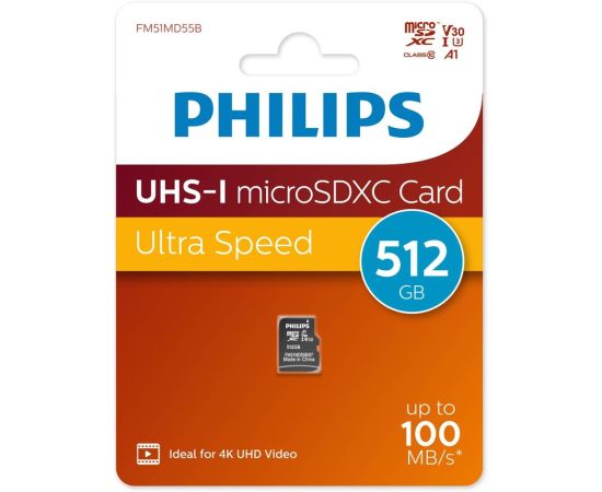 Карта памяти PHILIPS FM51MD55B/97 512GB High Speed microSDHC Class UHS-I U3, V30, A1, 100MB/s