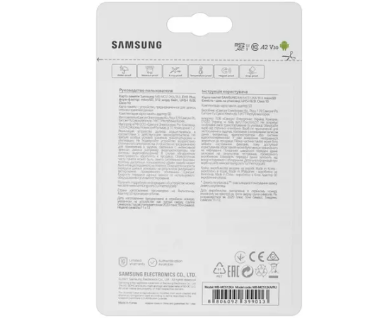 Карта памяти Samsung EVO Plus microSDXC Memory Card5 12Gb Class10 UHS-I U3+ microSD--> SD Adapter