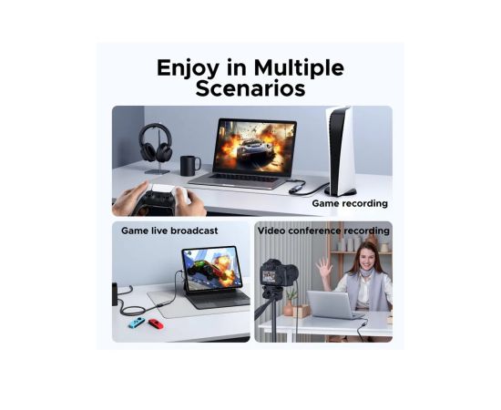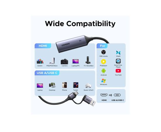 Карта видеозахвата UGREEN CM629 (15389) HD HDMI USB-C/USB-A 4K 30Hz Video Capture Card серый космос