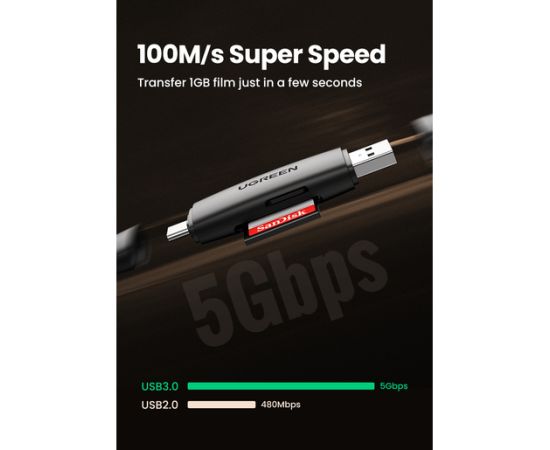 Картридер UGREEN CM304 80191 Multifunction USB-C +USB TF/SD 3.0 Card Reader Black