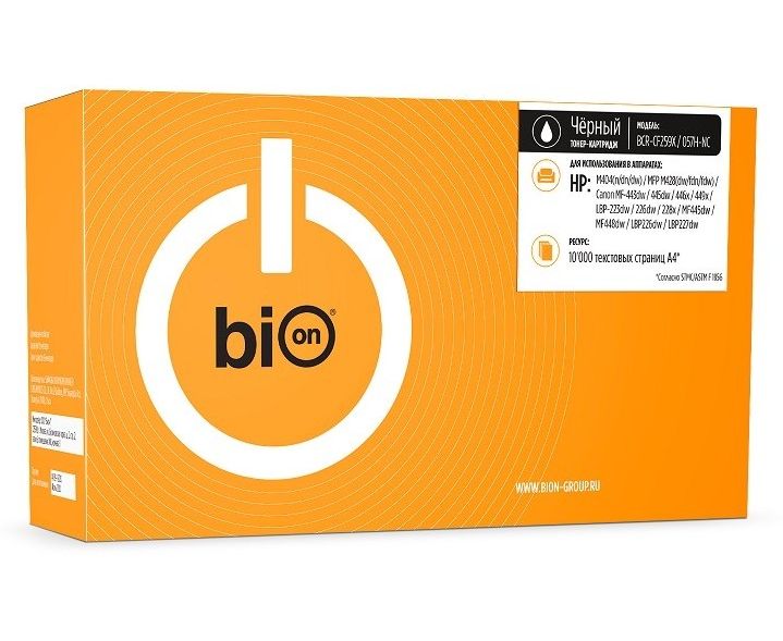 Bion BCR-CF259X/057H-NC Картридж для HP {LaserJet M406/M430, LaserJet M428, LaserJet Pro M304/M404; Canon i-SENSYS LBP223dw/226dw/228x/MF443dw/445dw/449x} (10000 стр.), Черный, без чипа