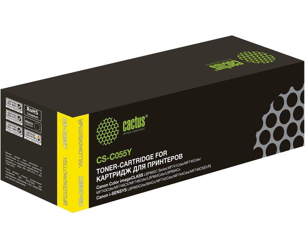 Картридж Cactus CS-C055Y лазерный желтый (2100стр.) для Canon LBP663Cdw, LBP664Cx, MF746Cx, MF742Cdw, MF744Cdw