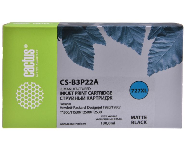 Картридж Cactus CS-B3P22A для HP DJ T920/T1500/T2530, черный матовый (130мл)