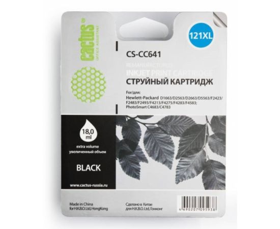 Картридж Cactus CS-CC641 №121XL для HP DeskJet D1663/D2563/D2663/D5563/F2423/F2483/F2493/F4213/F4275/F4283/F4583; PS C4683/C4783, 600 стр, (черный)