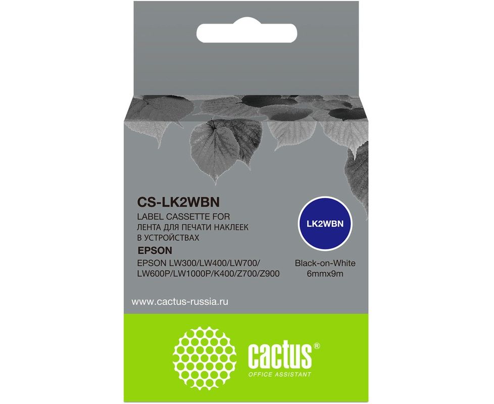 Картридж ленточный Cactus CS-LK2WBN черный для Epson LW300/LW400/LW700/LW600P/LW1000P/K400/Z700/Z900