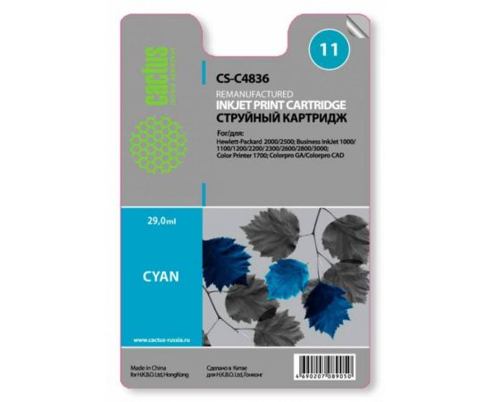 Картридж струйный Cactus CS-C4836 голубой для №11 HP 2000/2500/1000/1100/1200 (29ml)