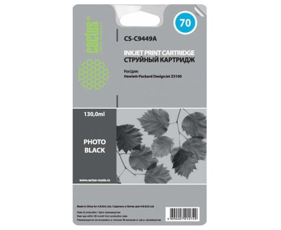 Картридж струйный Cactus CS-C9449A черный для №70 HP Designjet Z3100 (130ml)