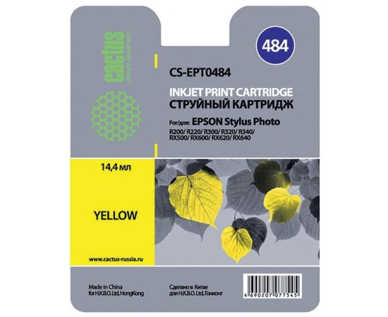 Картридж струйный Cactus CS-EPT0484 желтый для Epson Stylus Photo R200/R220 (14,4ml)