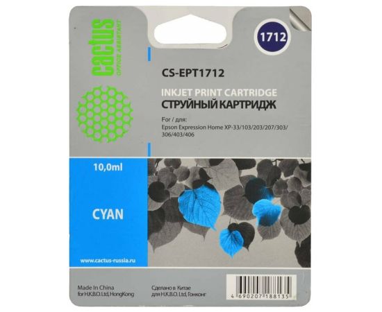 Картридж струйный Cactus CS-EPT1712 голубой для Epson Expression Home XP-33/103/203/207/303 (10ml)