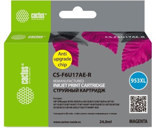 Картридж струйный Cactus CS-F6U17AE-R 953XL пурпурный 24мл для HP OJ Pro 7740/8210/8218/8710/8715
