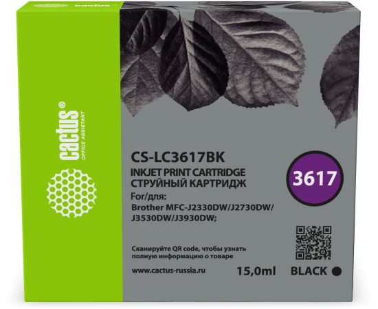 Картридж струйный Cactus CS-LC3617BK черный (15мл) для Brother MFC-J2330DW/J2730DW/J3530DW/J3930DW