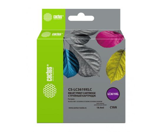 Картридж струйный Cactus CS-LC3619XLC голубой (18.4мл) для Brother MFC-J2330DW/J2730DW/J3530DW/J3930DW