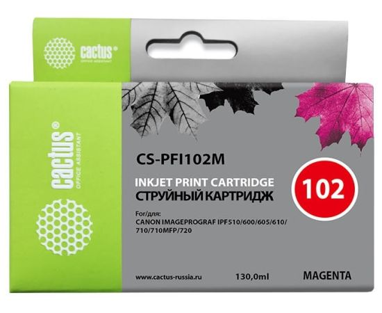 Картридж струйный Cactus CS-PFI102M пурпурный (130мл) для Canon IP iPF500/iPF600/iPF700/MFP M40/iPF765/LP17/LP24