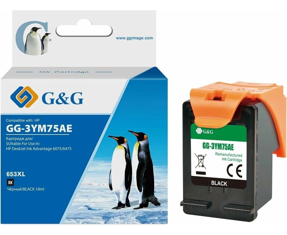Картридж струйный G&G GG-3YM75AE 653 черный (6мл) для HP DeskJet Plus Ink Advantage 6075/6475