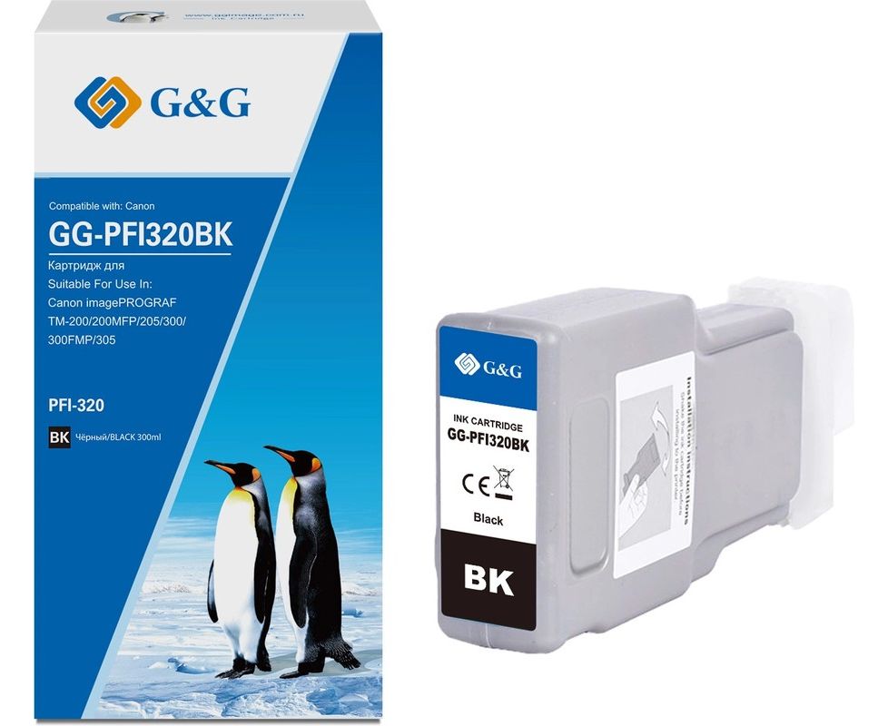 Картридж струйный G&G GG-PFI320BK PFI-320BK черный (300мл) для Canon imagePROGRAF TM-200/200MFP/205/300/300MFP/305
