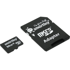 Карта памяти SMARTBUY SB64GBSDCL10-01 microSDXC, 64 GB, 10 Мб/сек. (class 10), с адап...