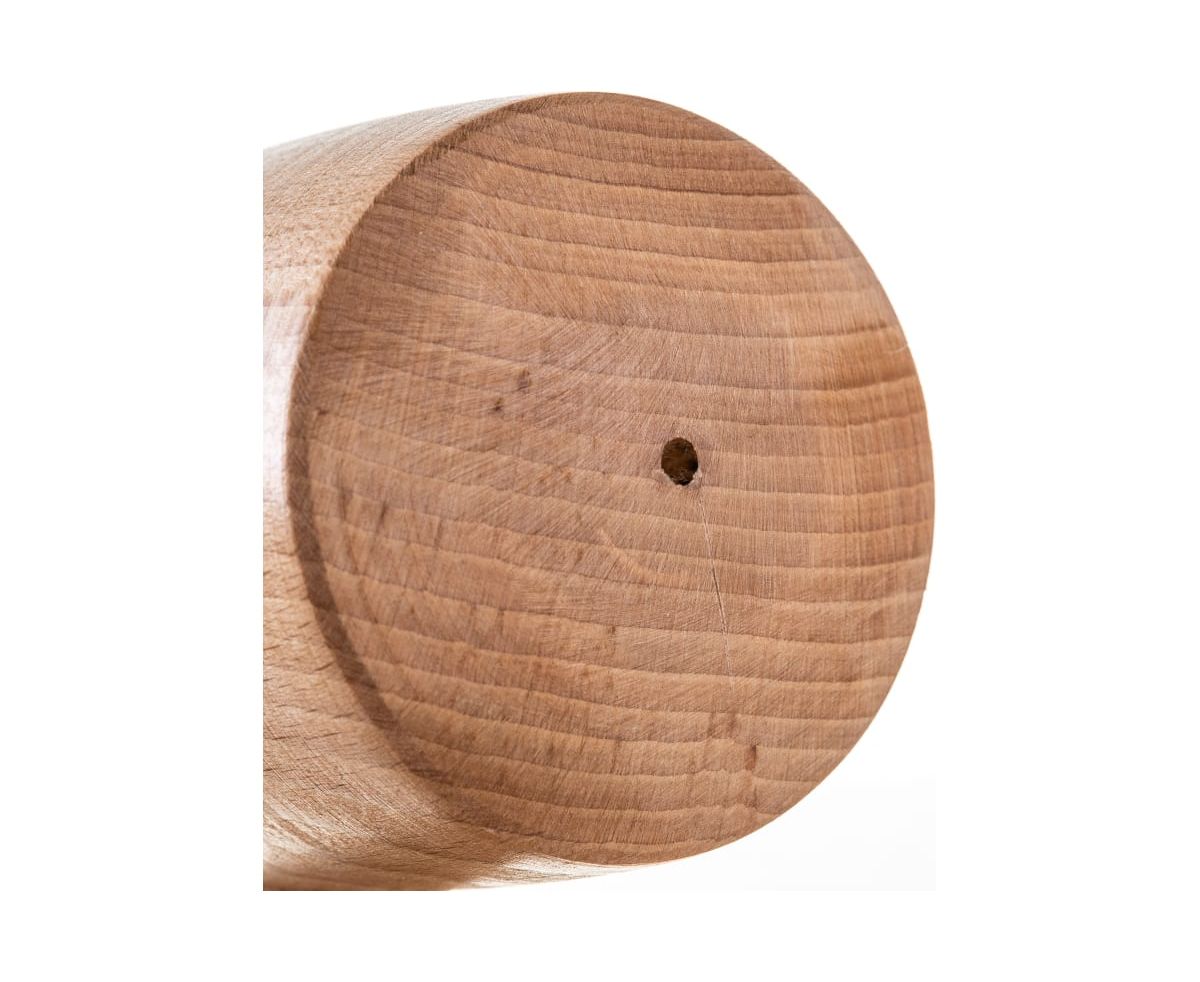 Деревянная круглая киянка обладает бойком круглой формы из высушенного бука. Инструмент используется совместно со стамесками. Рукоятка изготовлена из ясеня.