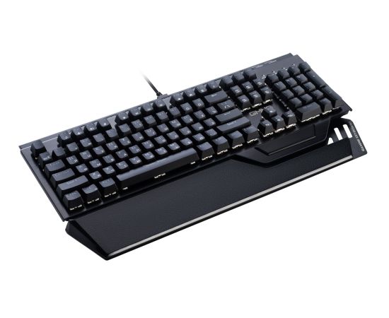 Красные свитчи обеспечивают четкое срабатывание клавиш с минимальной тактильной отдачей. Для комфортного использования клавиатуры предусмотрена эргономичная подставка под запястья. Дополнительный HUB на два USB-A порта для подключения периферийного оборудования.