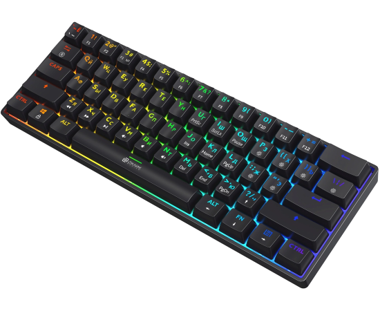 Компактная механическая клавиатура с реализованной технологией Hot-Swap. Яркая RGB-подсветка с возможностью настройки. Свитчи красные линейные (Huano)