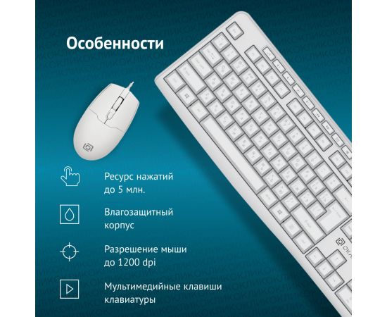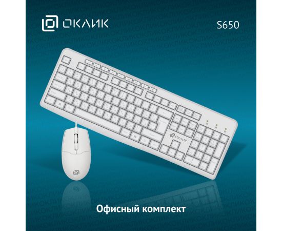 Клавиатура + мышь Оклик S650 клав:белый мышь:белый USB Multimedia (1875257)