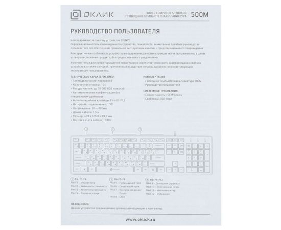 Клавиатура Oklick 500M белый USB slim Multimedia