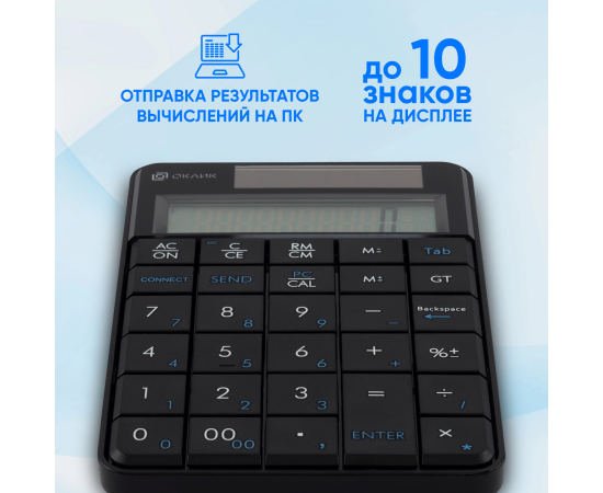 Беспроводной цифровой блок с встроенным калькулятором. Результаты вычеслений на калькуляторе, отправляются в ПК нажатием одной клавиши. Ножничный механизм клавиатуры обеспечивает надежную работу и отчетливое нажатие каждой клавиши.