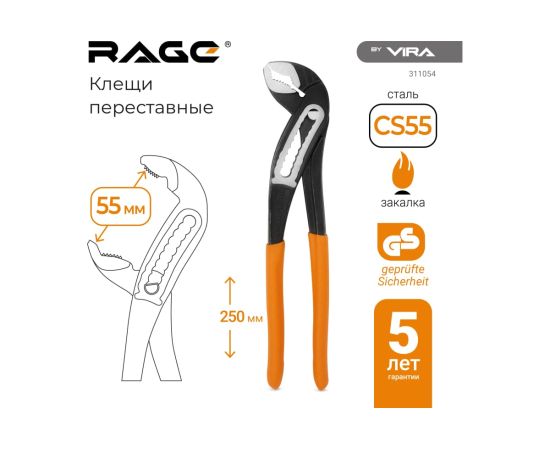 Клещи переставные VIRA RAGE 311054