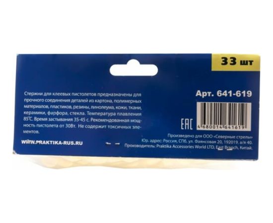 Технические характеристики стержней клеевых ПРАКТИКА 641-619