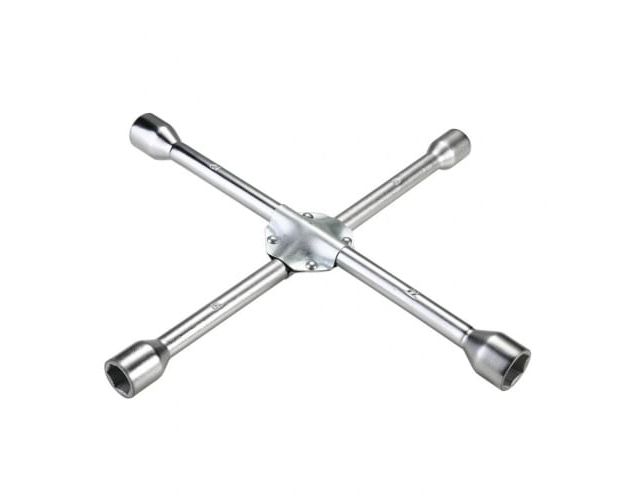 Ключ баллонный крестовой предназначен для снятия и установки колес автомобиля. Конструкция специнструмента позволяет увеличить рычаг приложения усилий в тех ситуациях, когда это необходимо для оперативной работы при замене колеса. Имеет четыре головки размерами 17 мм, 19 мм, 21 мм и 22 мм.