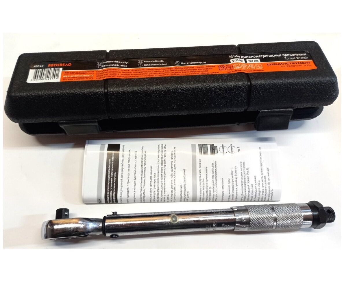 Динамометрический предельный ключ 3/8 5-25 Нм,L=280mm АвтоDело 40349 14881 обладает удобной рифленой рукояткой, которая не скользит в ладонях.