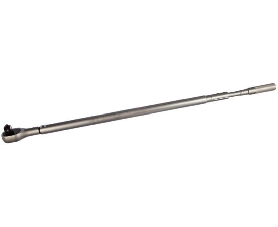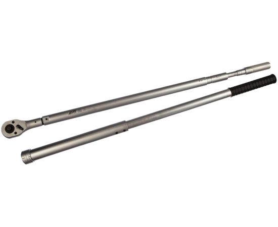 Динамометрический ключ 300-1500 Нм JTC-5537 используется для контроля усилия затяжки. Благодаря посадочному квадрату на 1" инструмент можно применять для работы со сложным крепежом. Полная длина инструмента составляет 1900 мм, что создает оптимальный рычаг для приложения небольших усилий. Имеется трещотка на 24 зуба с флажковым переключателем.