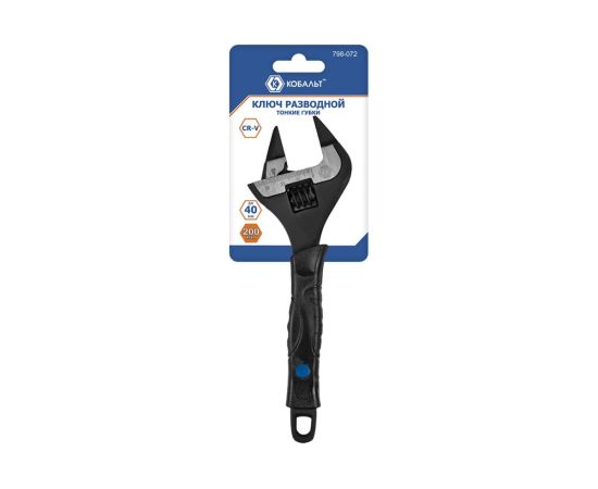 Ключ разводной КОБАЛЬТ (798-072) 200 мм, с тонкими губками, ширина захвата 40 мм, двухкомпонентная рукоятка CR-V