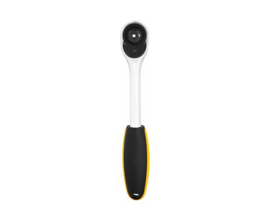 Ключ-трещотка упрощает затягивание крепежа в условиях ограниченного пространства. Ключ выполнен из качественной хромомолибденовой стали, что обеспечивает прочность и долговечность. Эргономичная двухкомпонентная ручка служит для удобного хвата и комфортной работы. Храповая головка с 45 зубцами с функцией реверса позволяет вращать ключ в обе стороны. Инструмент оснащён механизмом для быстрого сброса насадок.