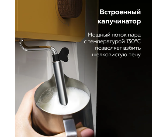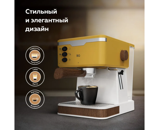 Кофеварка рожковая с капучинатором BQ CM2006 Желтая с подогревом чашек