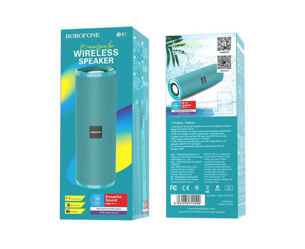 Колонка Bluetooth 5.0 2*5W 1200mAh Borofone BR1 (Peacock blue)