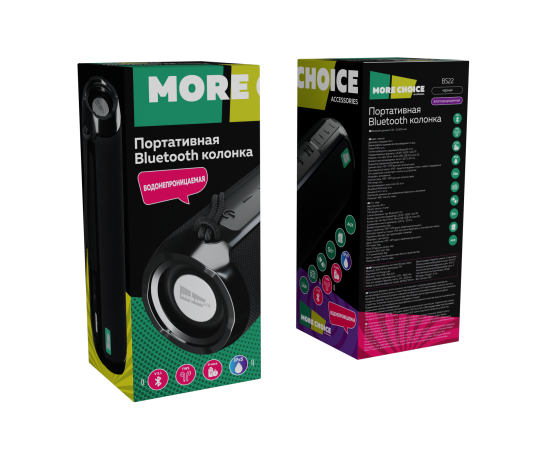 Колонка Bluetooth 5.1 2*5W 1800mAh More Choice BS22 (Black)