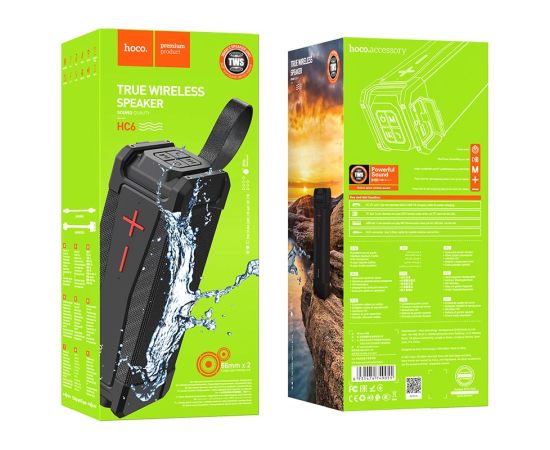 Колонка портативная HOCO HC6, MAGIC, пластик, Bluetooth, водонепроницаемая, FM, TF, AUX, TWS, цвет: чёрный