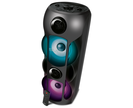 FM-радио, дисплей, поддержка microSD, ручка, световые эффекты