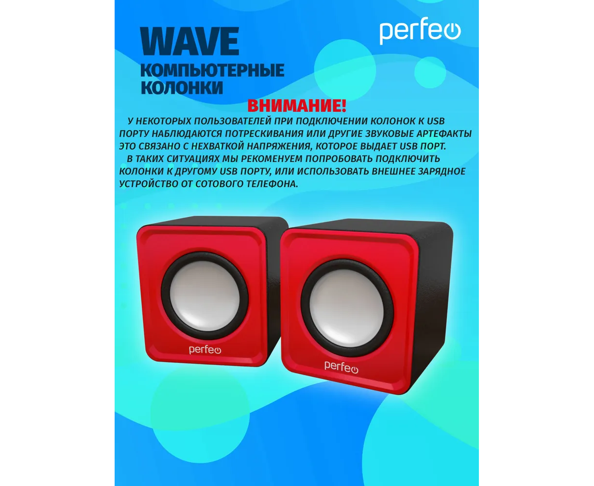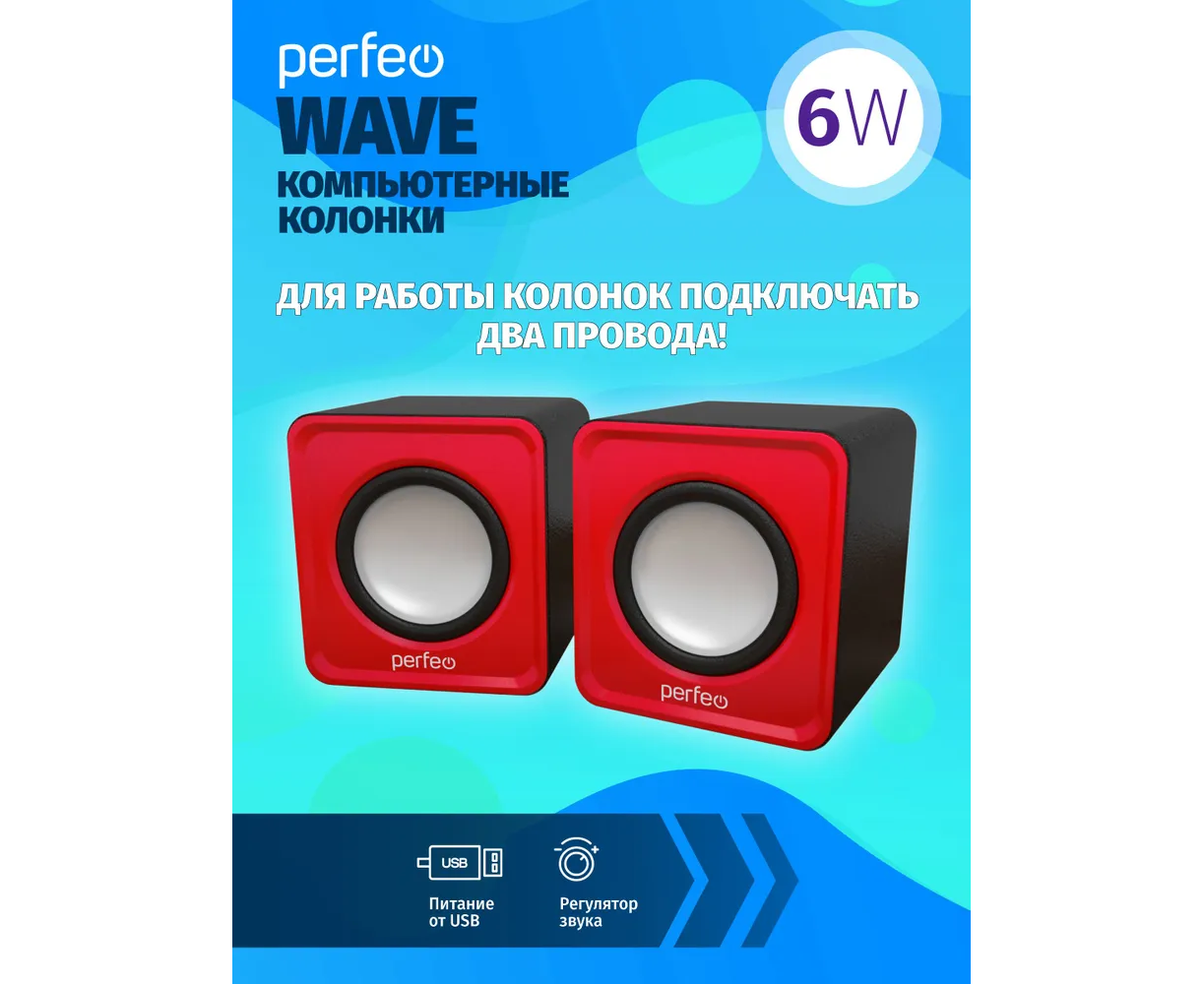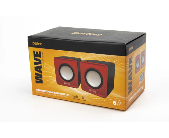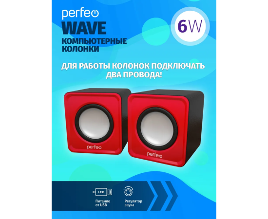 Колонки Perfeo"WAVE" 2.0, мощность 2х3Вт (RMS), красный, USB