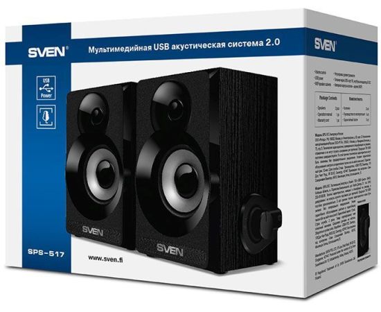 Акустическая система 2.0 SVEN SPS-517 USB, мощность 2x3 Вт(RMS) черный