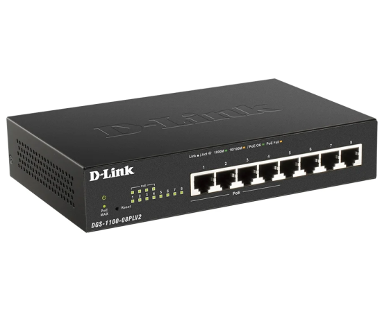 Коммутатор D-Link (DGS-1100-08PLV2/A1A) 8G 4PoE+ 80W управляемый