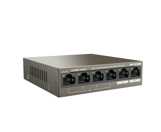Коммутатор IP-COM G2206P-4-63W Web smart PoE от IP-COM с 4 гигабитными портами PoE (максимальная мощность PoE 5Вт)
