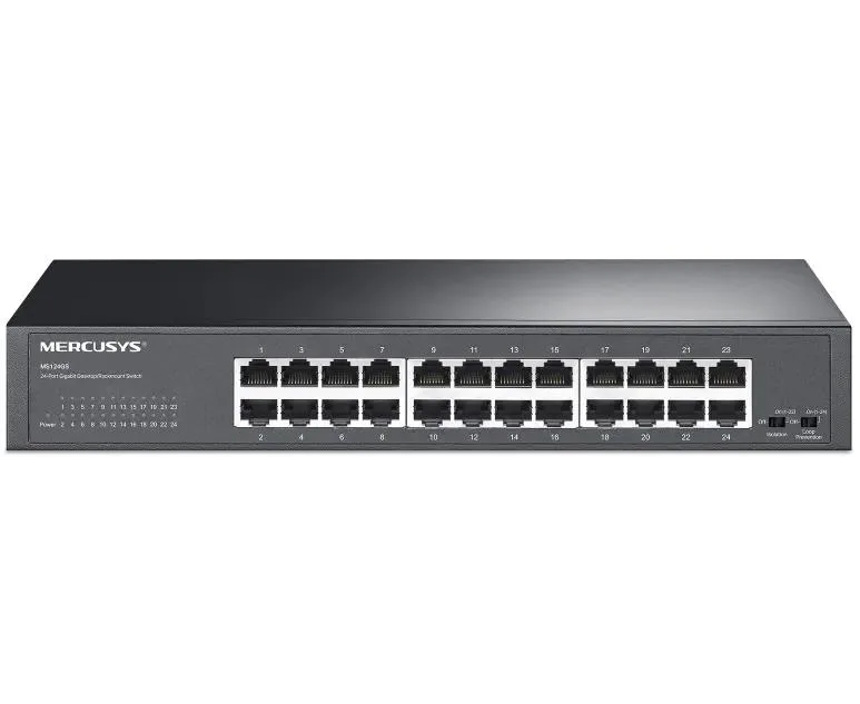 Коммутатор Mercusys MS124GS с 24 гигабитными портами для размещения на столе или в стойке