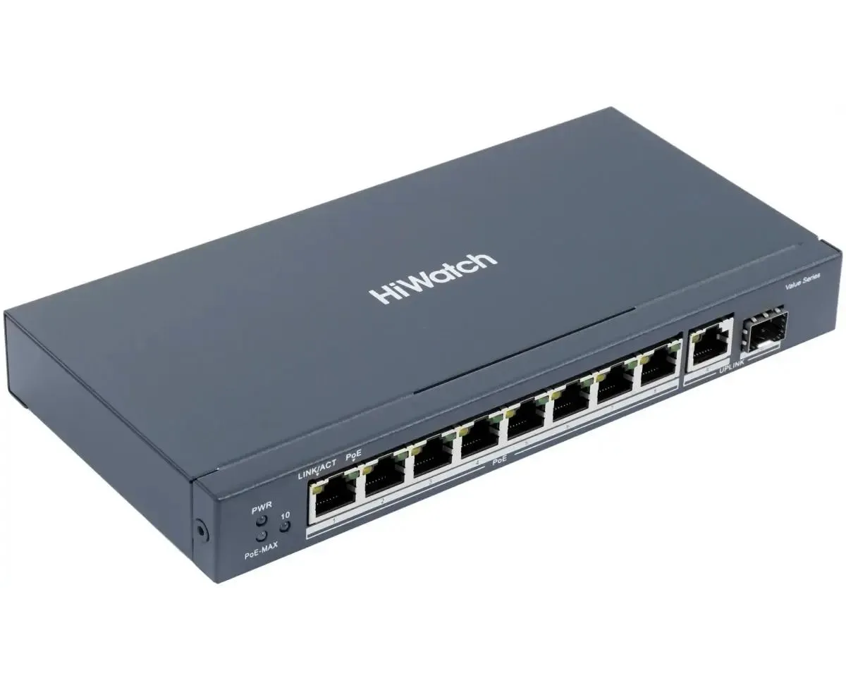 Коммутатор неуправляемый HiWatch DS-S1008GP 8x100Мбит/с 2x1Гбит/с 58W