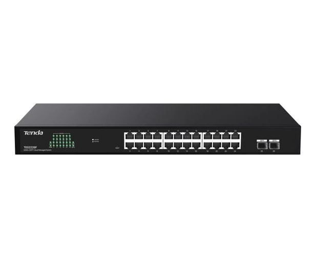 Коммутатор облачный управляемый Tenda TEG2226F 24x1Гбит/с, SFP 2x1Гбит/с, установка в стойку, металлический корпус