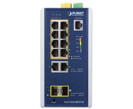 Коммутатор Planet (IGS-5225-8P4S) PoE для монтажа в DIN-рейку IP30 Industrial L2+/L4 8-Port 1000T 802.3at PoE+ 4-port 100/1000X SFP Managed