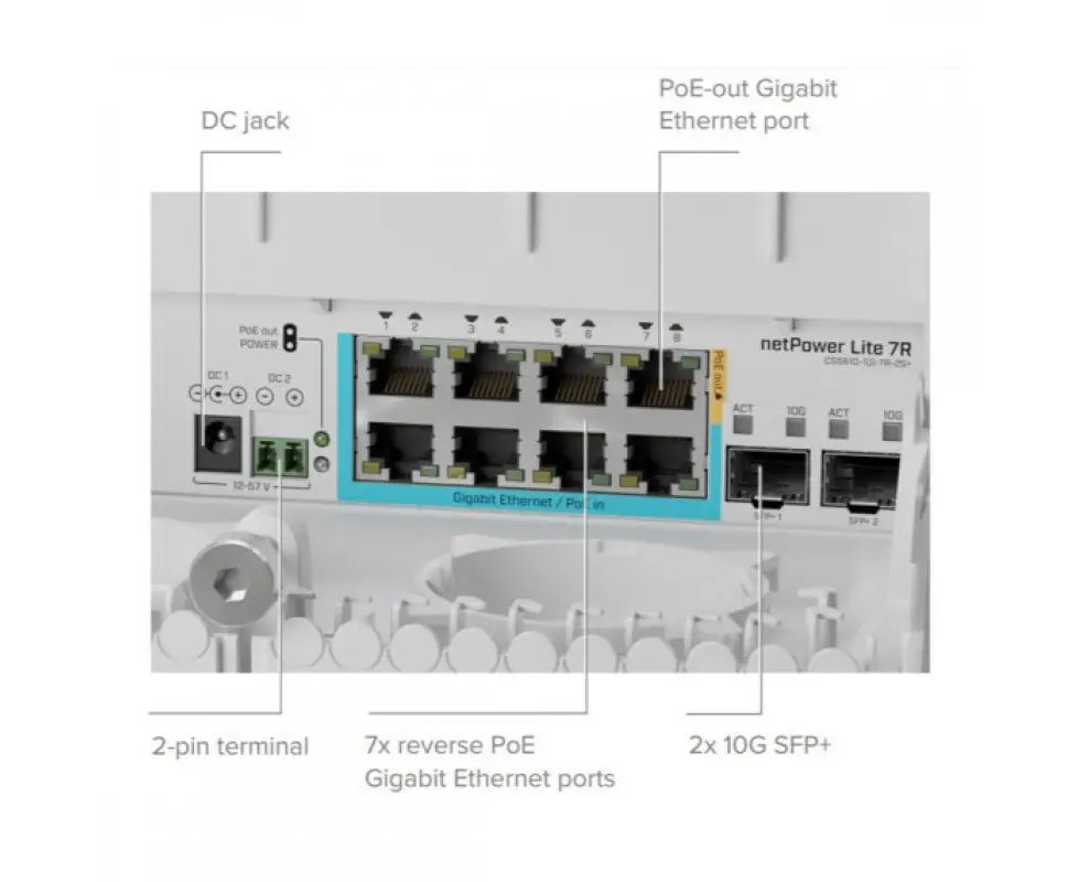 Коммутатор управляемый MikroTik netPower Lite 7R CSS610-1GI-7R-2S+OUT (L2) 8x1Гбит/с 2SFP+ 8PoE