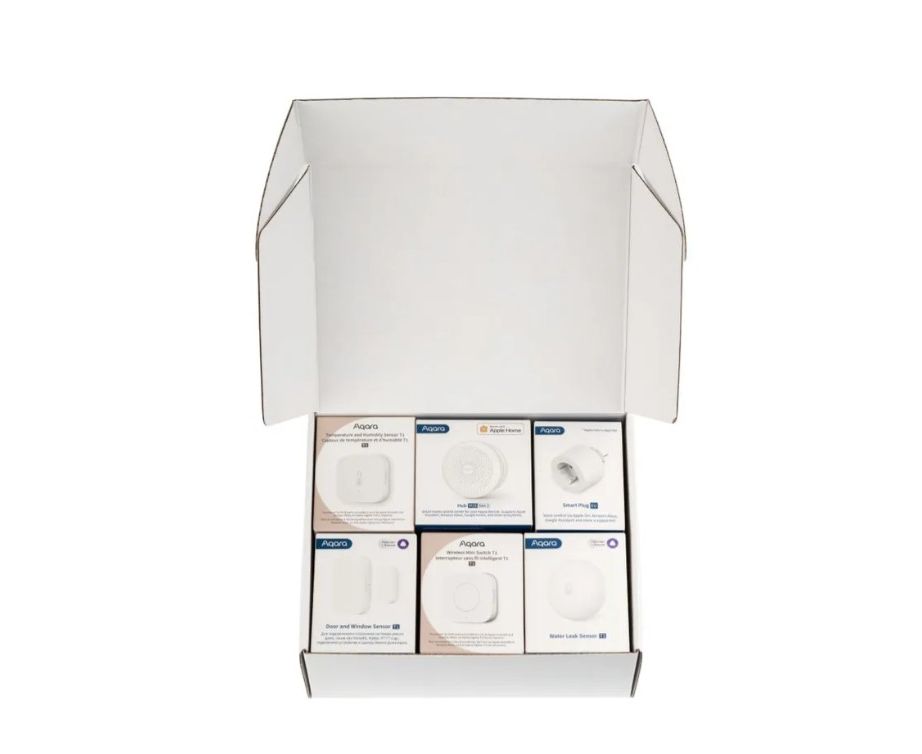 Aqara Выключайте свет из кровати, узнайте вовремя о протечке или включите обогреватель, пока едете на дачу. В комплекте — главные устройства Умного дома Aqara. Он подойдет как для знакомства с новой технологией, так и для подарка знакомым и близким. Комплект продается по специальной цене. Приезжайте в тёплый дом Подключите к Умной розетке обогреватель и включайте его дистанционно, когда едете на дачу. Управляйте через голосовых помощников Попросите Алису, Марусю или Siri, и они включат Умную розетку или сообщат температуру в доме. Сделайте дом безопаснее Датчики пришлют push-уведомление о взломе или протечке и включат сигнализацию. Управляйте Умным домом в одно касание Используйте беспроводную кнопку как дверной звонок или для управления устройствами Aqara. Состав комплекта: Центр Умного Дома M1S Gen 2, модель HM1S-G02 Датчик протечки Т1, модель WL-S02D Датчик температуры и влажности T1, модель TH-S02D Датчик открытия дверей и окон Т1, модель DW-S03D Беспроводная кнопка T1, модель WB-R02D Умная розетка, модель SP-EUC01 Home