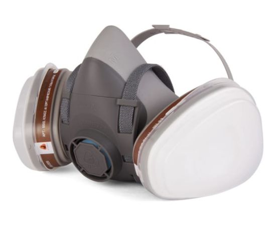 В комплекте: - 5500Р Полумаска промышленная (термопласт) - 1 шт; - 6510 Фильтры для защиты от органических газов и паров A1 - 2 шт; - 6020Р2R Предфильтр для защиты от пыли и аэрозолей P2 - 4 шт; - 5101 держатель для предфильтров - 2 шт; - перчатки нитриловые - 1 пара.